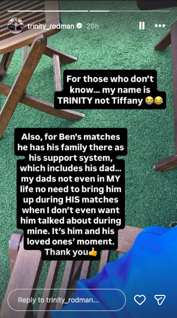 if you missed that], calls out Wimbledon announcers for mentioning her father after her boyfriend Ben Shelton's win...